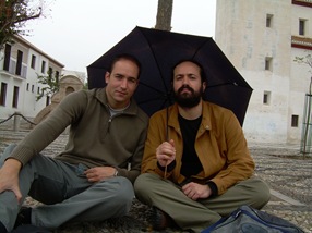 Primera parada, el mirador de San Nicolás. Hicimos la subida hasta allí por detrás, es decir, rodeando toda la colina del Albaicín hasta la iglesia del Salvador y bajando luego hasta el mirador, hay mucha pendiente, pero es un paseo bonito. Llovía, pero nos sentamos en el suelo bajo la cobertura de un árbol y nos pasamos allí un buen rato disfrutando de las vistas sobre la Alhambra y la ciudad de Granada.