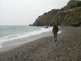 fase final del viaje; Granada-Málaga por la costa. La primera para da la hicimos en Lanjarón, un precioso pueblo entre Sierra Nevada y la Alpujarra granadina famoso por su agua y su balneario. Desayunamos unas vienas con tomate a precio y calidad de pueblo y nos dimos un paseo por sus calles. La siguiente parada fue en un mirador sobre la playa del Cañuelo, que es la primera playa de la provincia de Málaga. Luego nos acercamos hasta la playa de Maro donde, a pesar de la lluvia y de que nuestros paraguas se habían quedado en Granada (esas cosas pasan), estuvimos un buen rato recogiendo piedras, paseando e incluso metiendo los pies en el agua. De allí a las Cuevas de Nerja, que nunca habíamos visitado y que son bastante espectaculares (7 lerus de entrada). Una vez visitadas las cuevas entramos a comer en un buffet que hay justo enfrente de la entrada. Un sitio bastante apañado para comer hasta reventar por ocho euros y pico, no está mal. Y ya hicimos el resto del camino sin parar hasta llegar a nuestro destino final, Málaga.