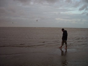Por la tarde-noche hemos ido con un amigo de Sieska a la playa. Heist está a unos 60 kilómetros de Gante, y a apenas 10 kilómetros de Holanda. Es una localidad típìca de playa cuyo mayor interes es que es el lugar donde he tenido mi primer contacto con el Mar del Norte. Hacía algo de frio, pero me he obligado a meter los pies en el agua. Como mandan los cánones. Tambien hemos cenado allí, en un sitio algo pijo pero bastante bueno.
